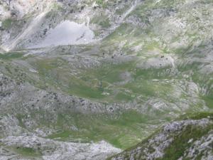 Vstáváme po půl osmé a ke snídani vaříme čaj. Asi polovina z nás se vrací zpátky pro vodu. Pak vyrážíme směrem k hoře Valbona. Myslíme si, že už jsme u odbočky, ale nejsme, tak jdeme dál až do sedla, kde je odbočka. Jdeme se podívat na protější kopec a zvažujeme možnosti. Terén vypadá hodně náročně a proto se rozhodujeme, že nebudeme pokračovat podle původního plánu. Bylo by to pro všechny hodně riskantní.