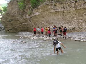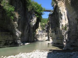 Vstáváme v 6:00. Hřmí a trochu začíná pršet. Na snídani máme müsli nebo chleba s nutelou a čaj. V 8:00 vyrážíme do kaňonu. Otec Roman a Jirka, který léčí kotník, zůstávají u autobusu. Když dojdeme k řece zjistíme, že nemáme Verču. Martin se pro ni vrací a za chvíli nás dojdou. Musíme brodit častěji, než jsme předpokládali. Ze začátku stále zouvám a obouvám pohory, ale pak to vzdávám a jdu pořád na boso. Většina lidí brodí i v pohorách a v oblečení, protože je teplo. Užíváme si to, je to moc krásné místo. Někde je vody až po krk a musí se plavat. Snažím se držet batoh s mobilem a foťákem nad vodou. Po nějaké době koukáme na GPS a zjišťujeme, že jsme ušli dost málo a celý kaňon bychom neprošli, takže se otáčíme a jdeme zpět. Když jsme pod mostem, volá na nás shora otec Roman, ale nejde ho slyšet, protože je hodně vysoko a dole hučí voda.